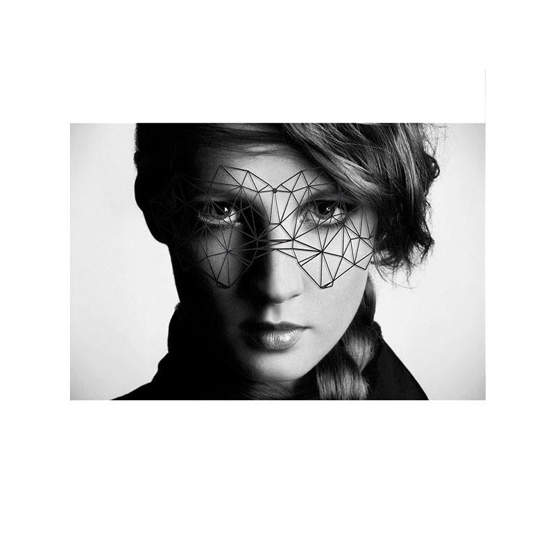 - Material: Máscara de vinilo negro con un diseño geométrico exclusivo.
