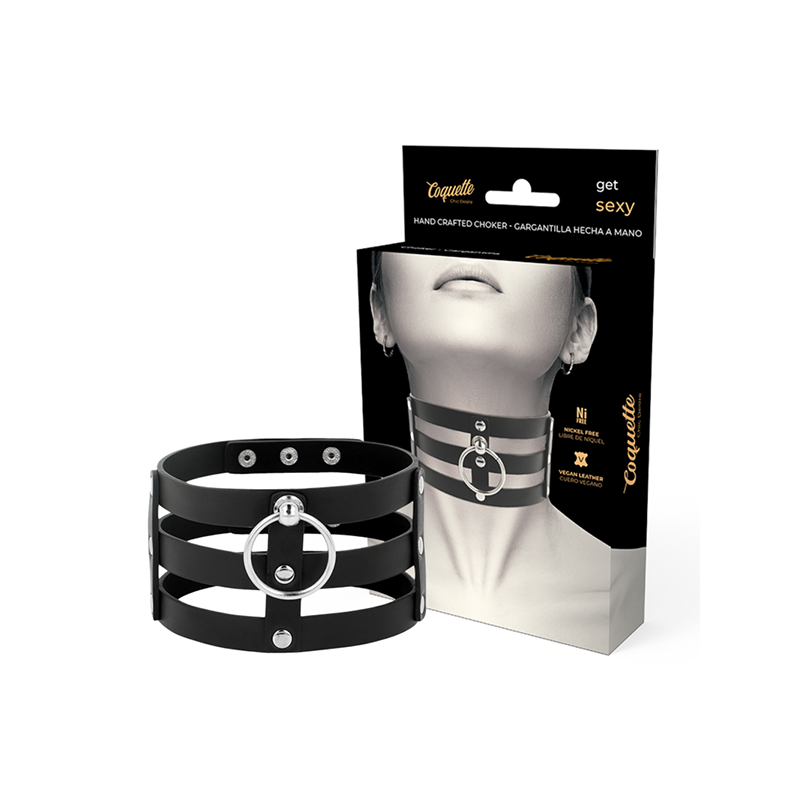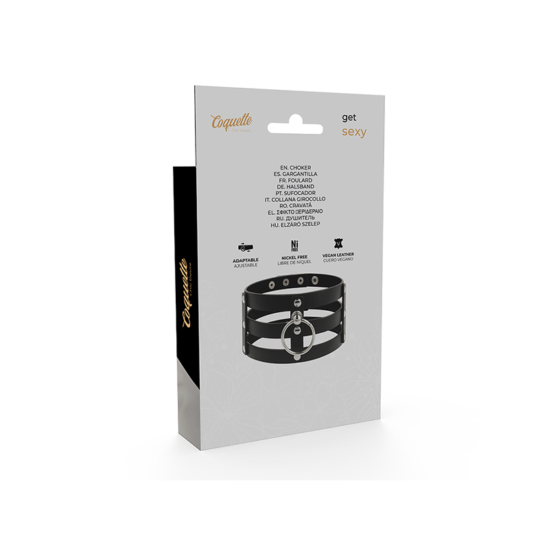 ¡Descubre Coquette Chic Desire Shokers! El accesorio imprescindible para completar tus looks más atrevidos, acompañar tus sesiones bondage o potenciar tus conjuntos de lencería. Este collar negro de inspiración BDSM es totalmente ajustable gracias a sus corchetes, permitiéndote adaptarlo fácilmente a tu medida y estilo.