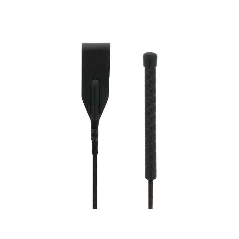 Fusta fetichista de cuero fino con mango de alta calidad para juegos de dominación. Longitud total 45 cm.