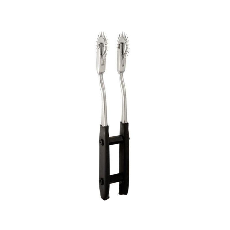 - Doble rueda: Cada rueda cuenta con púas puntiagudas que deslizan suavemente sobre la piel, provocando piel de gallina y aumentando la sensibilidad.