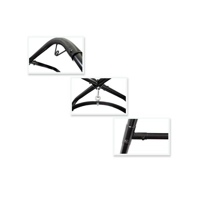 El Fantasy Swing Stand es la solución perfecta para quienes desean explorar nuevas posiciones y escenarios bondage sin preocuparse por perforar techos o paredes. Esta estructura robusta y estable soporta hasta 400 lbs (aprox. 180 kg) y se monta de forma rápida y sencilla, en menos de diez minutos, sin necesidad de herramientas adicionales[2][5][7][8].