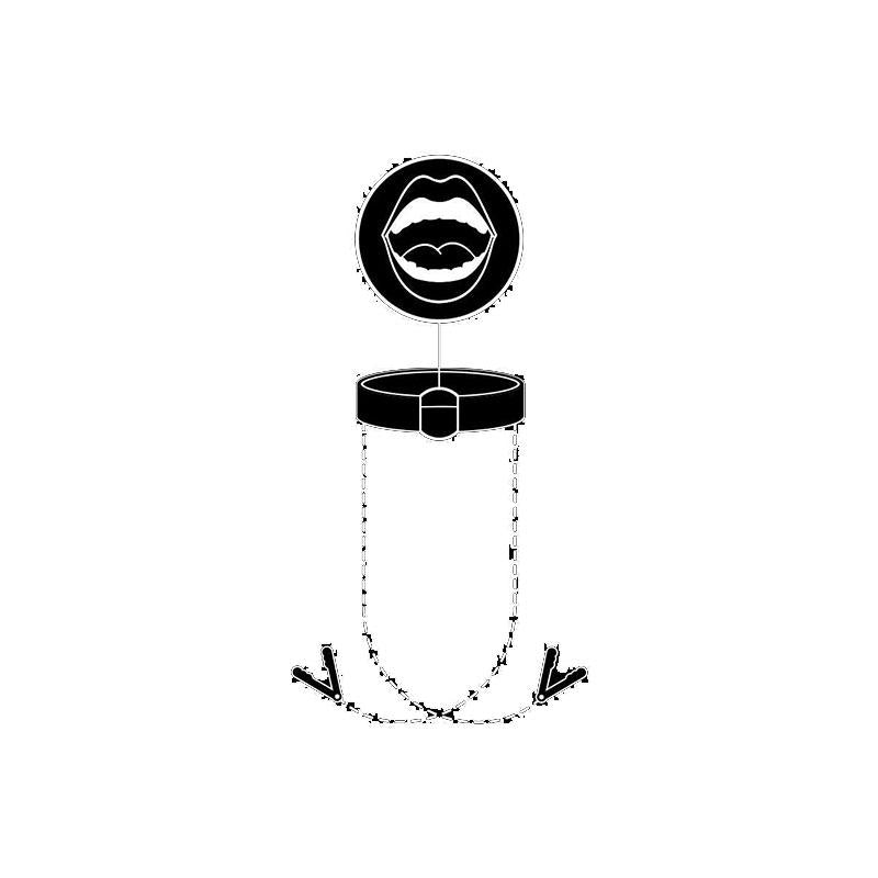 La mordaza con anilla de Fetish Submissive es el accesorio perfecto para quienes desean llevar sus juegos BDSM a otro nivel. Fabricada en suave cuero vegano, cuenta con una resistente anilla de PVC que mantiene la boca abierta y permite el acceso total, mientras que las pinzas para pezones, unidas por una cadena metálica, añaden una dosis extra de placer y control.