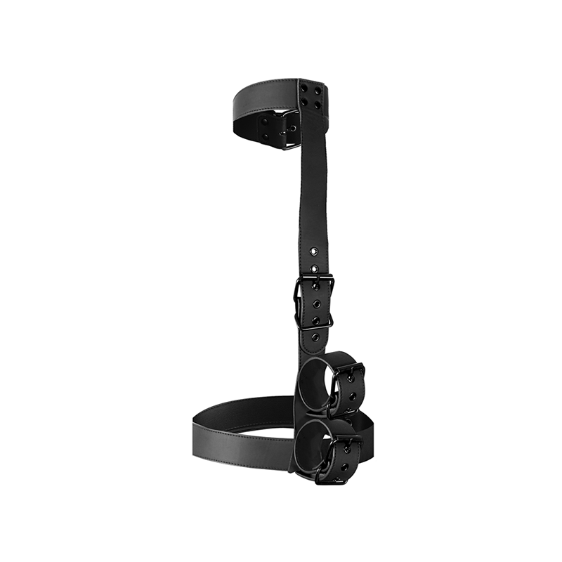 Su diseño ajustable permite una adaptación perfecta tanto en el cuello como en las muñecas, con hebillas que facilitan la personalización del ajuste y la intensidad de la restricción. La versatilidad de atado permite utilizarlo por delante o por detrás, adaptándose a diferentes dinámicas de dominación y sumisión. El diseño ergonómico y los materiales seguros para el cuerpo aseguran comodidad incluso en sesiones prolongadas.