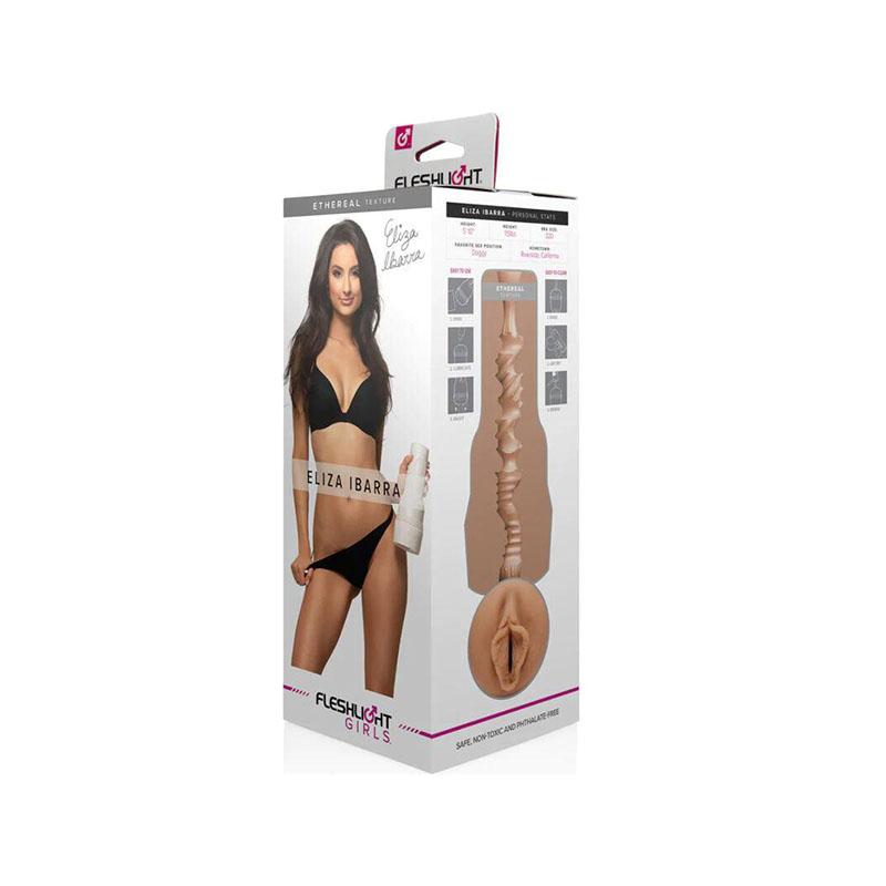 Deslízate dentro del coño Fleshlight de Eliza Ibarra y experimenta “Ethereal”. ¡Es demasiado perfecto para este mundo! A medida que te abres camino entre sus delicados labios y te deslizas dentro, lo que comienza como un pasadizo sinuoso y acanalado se transforma en una textura muy detallada que consiste en una deliciosa variedad de anillos y costillas cruzadas.