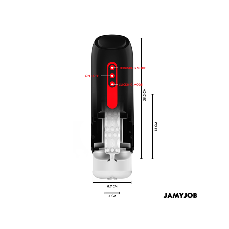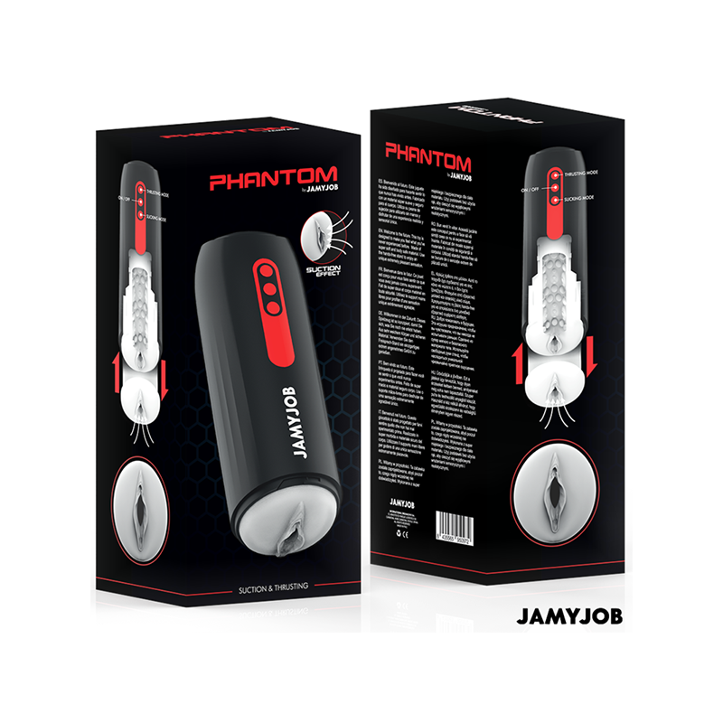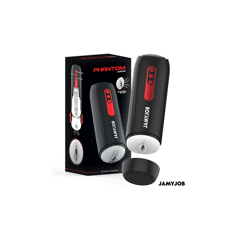 El masturbador automático con forma de boca para hombre PHANTOM de la marca JAMYJOB es un dispositivo innovador y elegante, diseñado para proporcionar una experiencia estimulante y placentera de alta calidad. Con un diseño en color negro y rojo y detalles en rojo, este masturbador combina estética y funcionalidad en un solo producto.