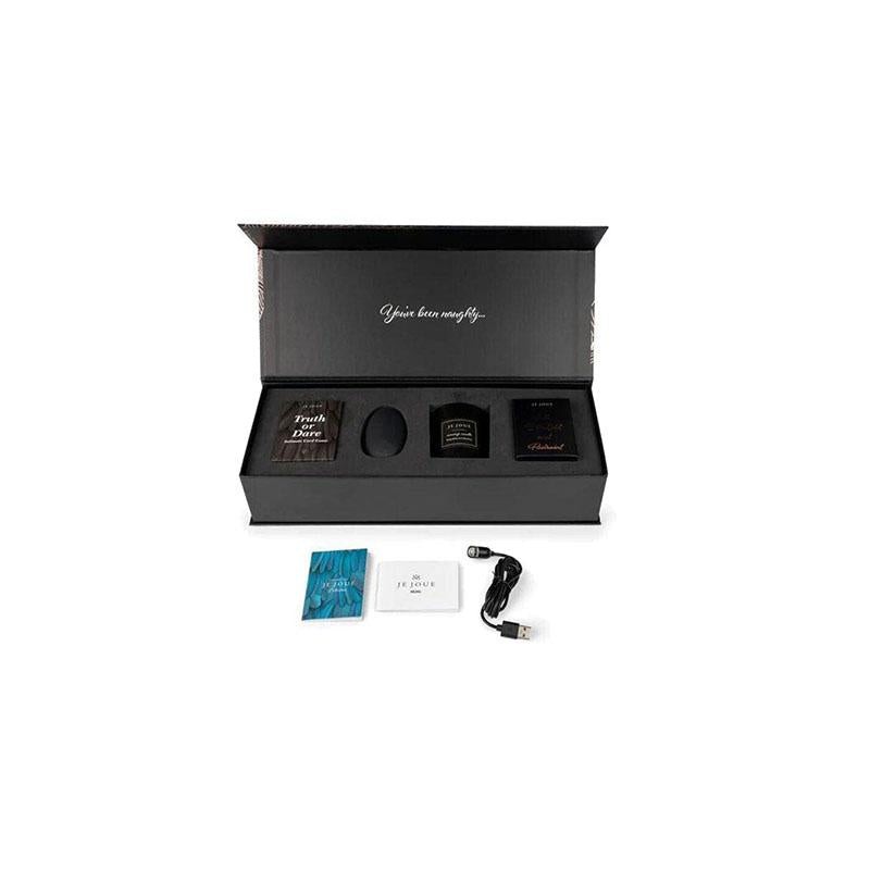 Bellamente empaquetado en nuestro diseño de plumas de oro rosa Je Joue, este es el juego de regalo perfecto para esa persona traviesa especial en tu vida. Todo lo que necesitas para una noche íntima e inolvidable explorando la mente, el cuerpo y el alma de tu pareja. ¡Terminarás la noche sintiéndote mimado, amado y más cerca que nunca!